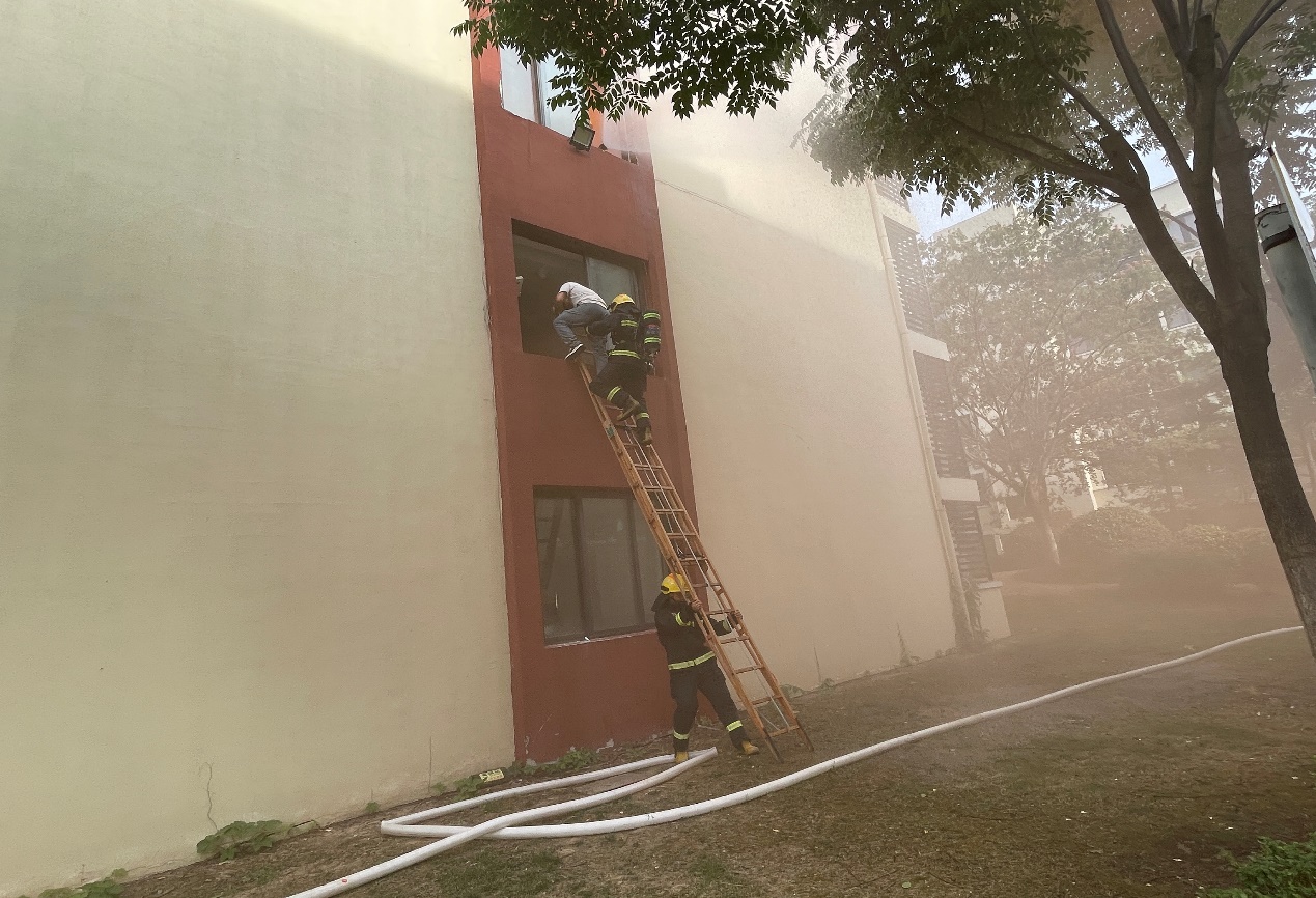 本次演練模擬的是電動自行車違規(guī)充電期間突發(fā)自燃的情景,園區(qū)公舍值班人員收到消防報警后,立即通知當班安保隊長前往現(xiàn)場,核實后迅速啟動火災應急預案。演練過程中,園區(qū)公舍微型消防站義務消防員初期控制火勢發(fā)展,增援力量園區(qū)消防應急救援大隊及時到場,各參演小組人員反應迅速、處置規(guī)范、配合默契,最終成功將“火”撲滅,受困人員安全疏散至安全區(qū)域,達到了“快出警、能救援、善處置、保安全”的預定演練目標。