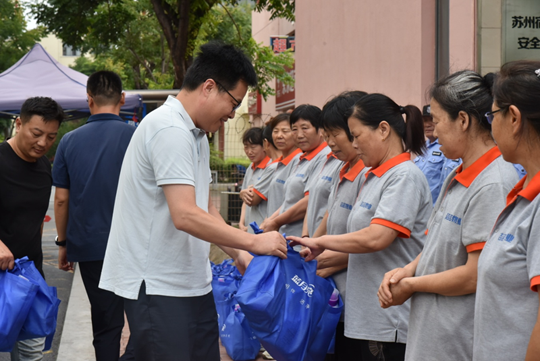 三伏天以來,宿遷地區(qū)氣溫節(jié)節(jié)攀高,連日高溫天氣給一線勞動者帶來了嚴(yán)峻考驗。為切實做好防暑降溫工作,保障一線勞動者的身體健康安全, 8月14日,建發(fā)公司組織開展“一線送清涼”高溫慰問活動。公司副總經(jīng)理倪松、相關(guān)部門負(fù)責(zé)人共同參加了慰問。