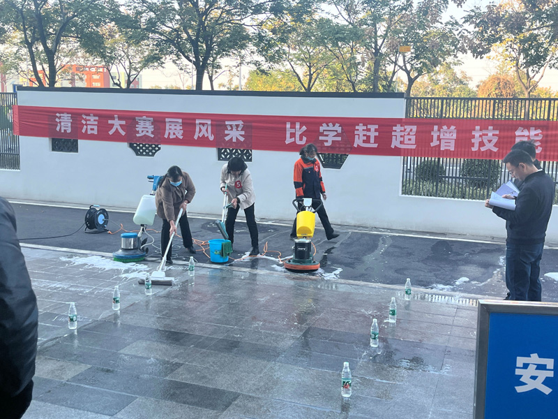 此次大賽分理論知識和操作技能兩部分。理論知識主要考核選手對專業(yè)理論知識的掌握程度;技能實操則從清潔機械操作、玻璃清潔等方面進(jìn)行現(xiàn)場考核。