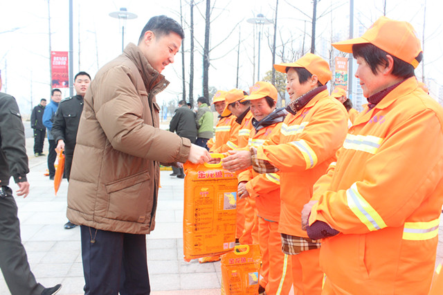 118上午園區(qū)黨工委委員、管委會副主任、規(guī)劃建設(shè)局局長許紹杰帶隊慰問了奮戰(zhàn)在一線的城市維護作業(yè)人員,向他們送上了春節(jié)的問候。