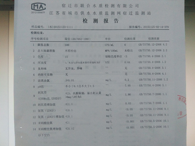 11月23日下午,建發(fā)公司組織宿遷市聯(lián)合市政工程有限公司開展三期生活水箱下半年清洗工作。截止25日,水箱清洗、消毒,水質(zhì)檢測已全面完成。