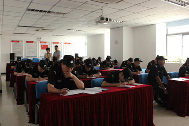 建發(fā)公司為了不斷提高保安人員的處事能力,針對目前保安人員文化水平較低,流動性強的特點,除定期對保安人員進行軍事技能培訓(xùn)之外,還于每季度對所有保安人員進行理論知識的考試。